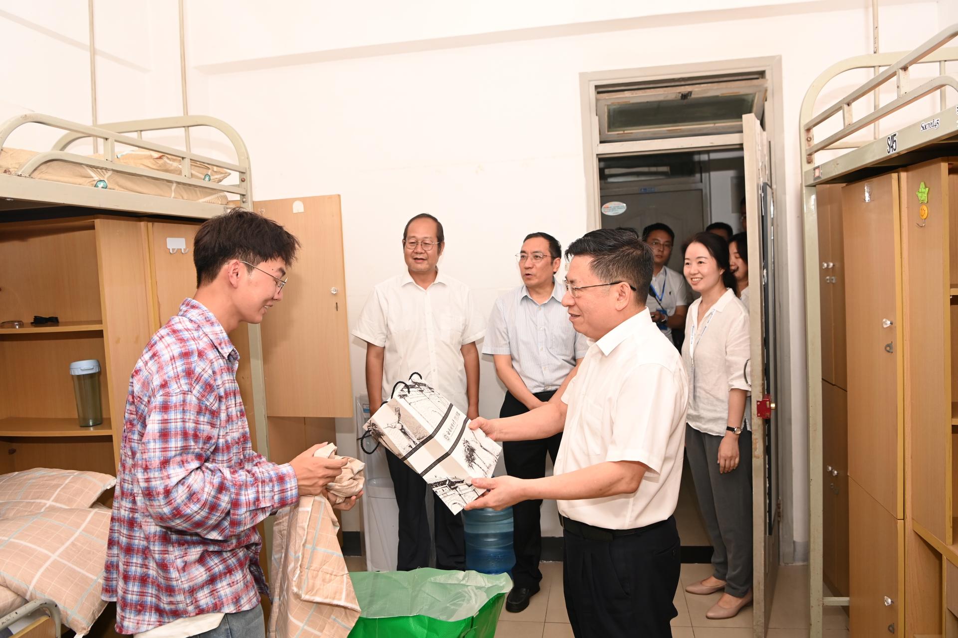 在喜迎2023級新生入學之際,為營造溫馨熱烈的迎新氛圍,全面了解新生所思所想所盼,黨委書記趙德武,黨委副書記、校長李永強,黨委常委、副校長史代敏等深入新生公寓走訪慰問。