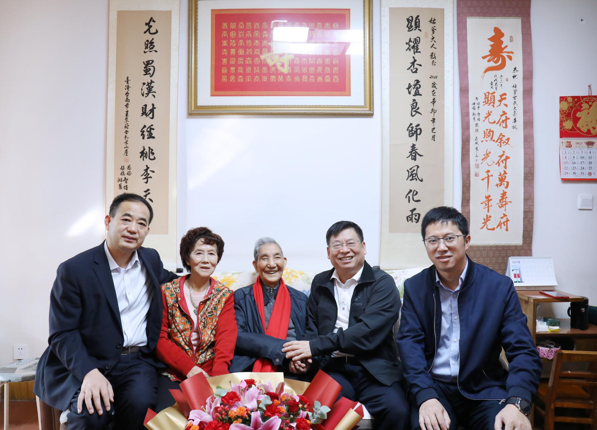 趙德武向稅顯光教授送上了生日的鮮花和祝福,并與他親切交談,共話家常。趙德武關切地詢問稅顯光教授的生活起居和健康狀況,了解到他每天生活規律、睡眠充足、經常動手動腦、喜歡運動,感到十分欣慰和鼓舞。稅顯光教授雖已過期頤之年,但依然精神矍鑠、思路清晰、聲音洪亮,不禁讓大家感到敬佩。趙德武代表學校感謝稅顯光教授躬耕教壇潛心教學,為學校改革發展做出的貢獻。