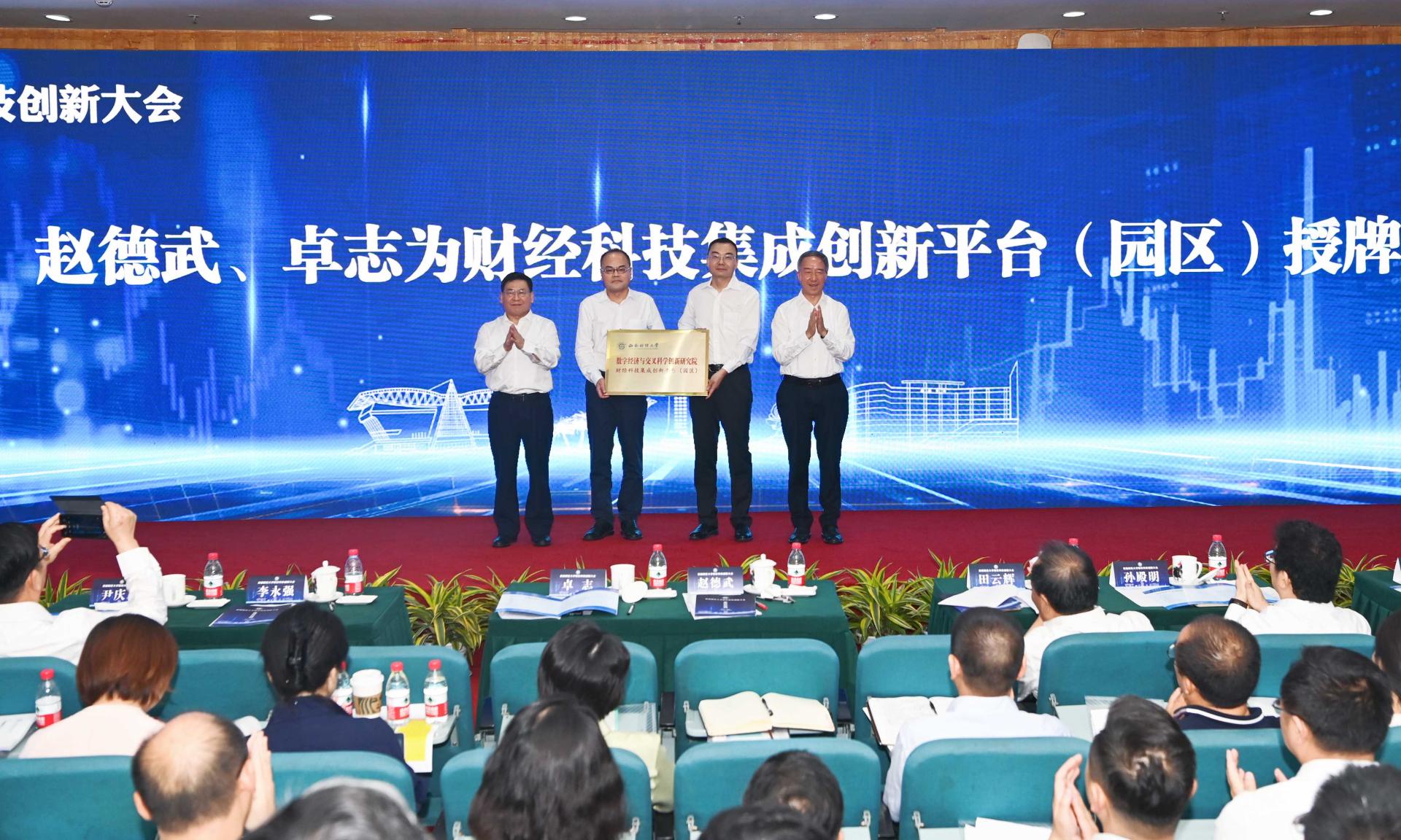 7月7日,西南財(cái)經(jīng)大學(xué)隆重召開財(cái)經(jīng)科技創(chuàng)新大會(huì),深入學(xué)習(xí)貫徹習(xí)近平總書記關(guān)于科技自立自強(qiáng)的重要論述,總結(jié)科技創(chuàng)新前期工作,舉行“數(shù)字經(jīng)濟(jì)與交叉科學(xué)創(chuàng)新研究院”財(cái)經(jīng)科技集成創(chuàng)新平臺(tái)(園區(qū))揭牌儀式,公布首批入駐團(tuán)隊(duì),部署下一步工作。學(xué)校黨委書記趙德武,黨委副書記、校長(zhǎng)卓志,黨委副書記、副校長(zhǎng)李永強(qiáng),黨委副書記、紀(jì)委書記孫殿明,黨委常委、副校長(zhǎng)尹慶雙、史代敏、張邦富、桂富強(qiáng),學(xué)校機(jī)關(guān)職能部門主要負(fù)責(zé)人,財(cái)經(jīng)科技創(chuàng)新相關(guān)學(xué)院領(lǐng)導(dǎo)班子成員、教授委員會(huì)主席和系所負(fù)責(zé)人,校學(xué)術(shù)委員會(huì)委員代表,入駐財(cái)經(jīng)科技集成創(chuàng)新平臺(tái)的創(chuàng)新團(tuán)隊(duì)負(fù)責(zé)人及成員,優(yōu)秀青年人才代表,學(xué)生代表,校友代表等近400人參加會(huì)議。李永強(qiáng)主持大會(huì)。