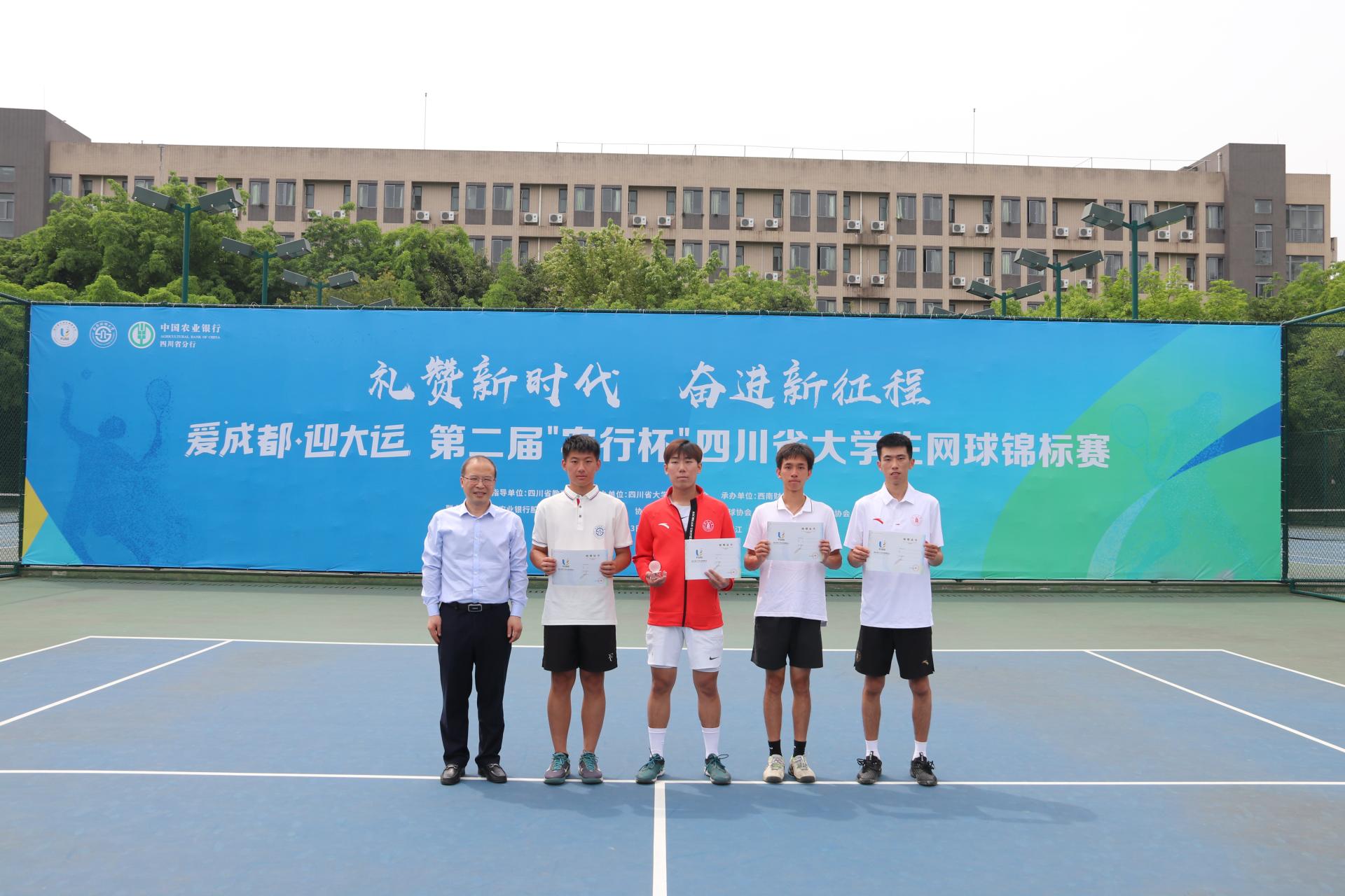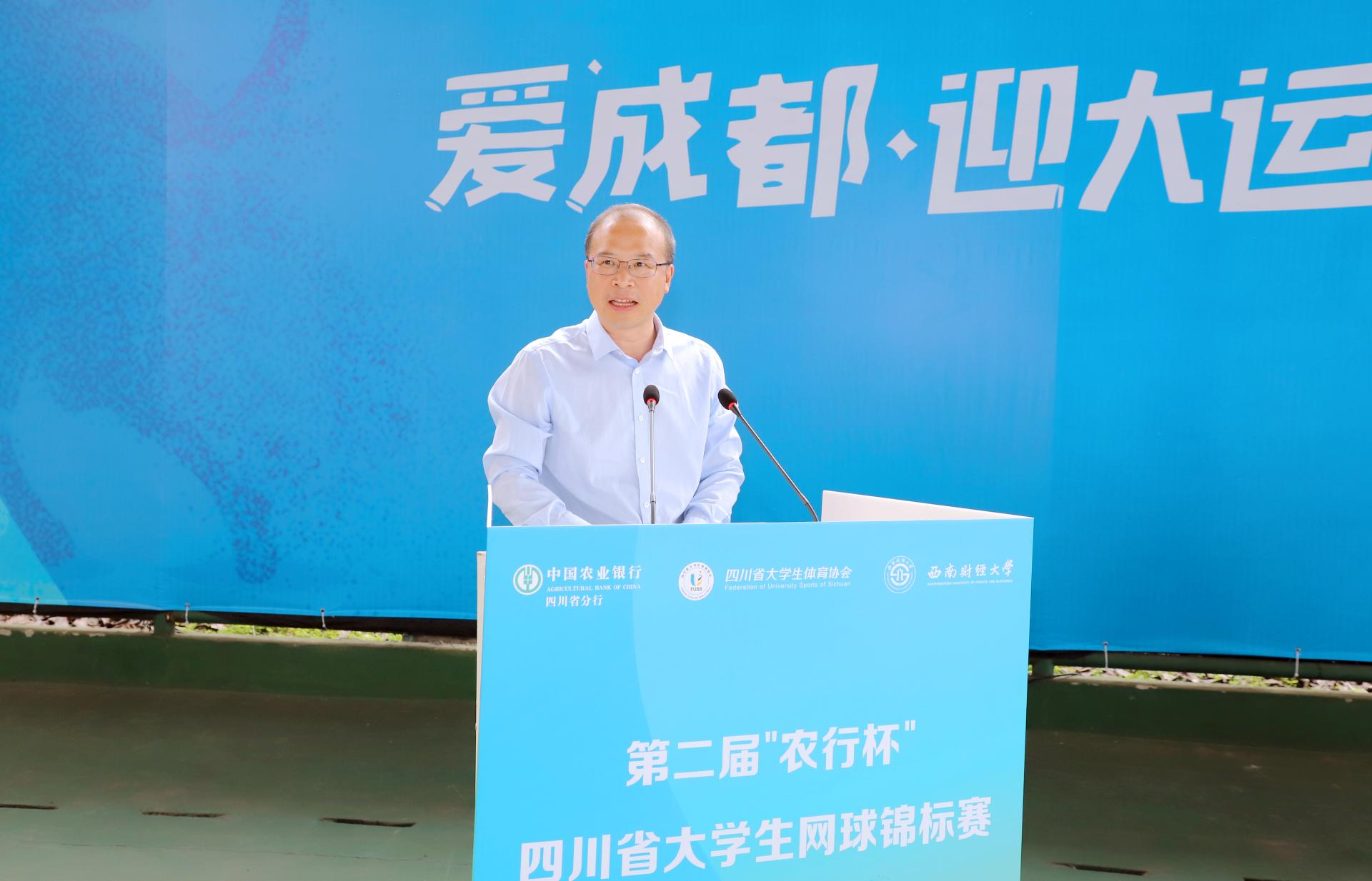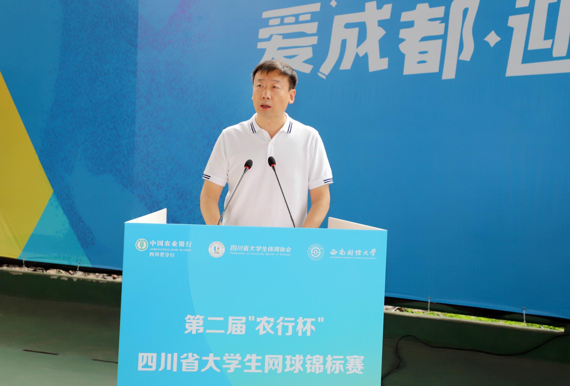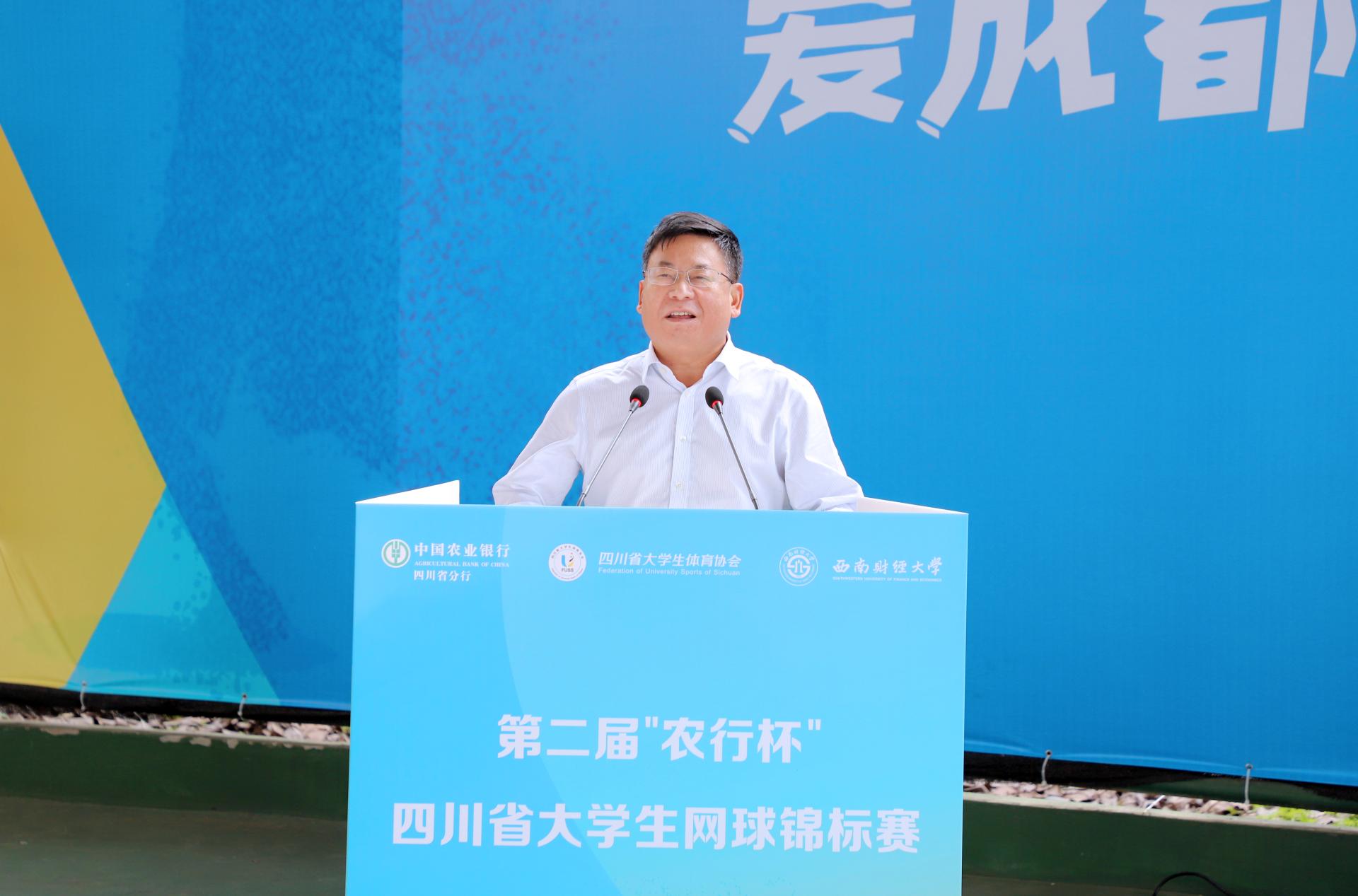 5月13日、14日,由四川省教育廳指導、四川省大學生體育協會主辦、西南財經大學承辦、中國農業銀行四川省分行聯辦的第二屆“農行杯”四川省大學生網球錦標賽在我校柳林校區舉行,全省48支代表隊和700余名運動員、教練員、裁判員參與了比賽。四川省高等院校網球協會主席賴廷謙教授,中國農業銀行四川省分行黨委書記、行長孫景偉,中國農業銀行四川省分行黨委委員、副行長兼成都分行黨委書記、行長王屹,中國農業銀行四川省分行高級專家兼成都分行黨委委員、副行長朱波,四川省大學生網球協會副會長王定宣教授,成都市網球協會副主席賀杰,我校黨委書記趙德武教授,黨委副書記、副校長李永強教授出席開幕式。學校體育學院院長、四川省大學生體育協會會長楊遠波主持開幕式。
