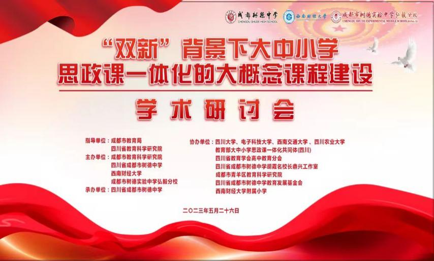 5月26日,由我校與成都市教育科學研究院、成都樹德中學等單位聯合主辦的“‘雙新’背景下大中小學思政課一體化的大概念課程建設”研討會在成都樹德中學隆重舉行。300余位大中小思政教師現場參會,近萬人觀看線上直播,研討會圍繞“縱向思政課程——推進中國式現代化需要大情懷”“橫向課程思政——推進中國式現代化需要提升學科核心素養”兩個主題進行了教學展示和專家沙龍。我校馬克思主義學院、教務處負責人和教師代表,成都市教育科學研究院、青羊區教育局、西南財經大學附屬小學等單位相關負責人出席開幕式。